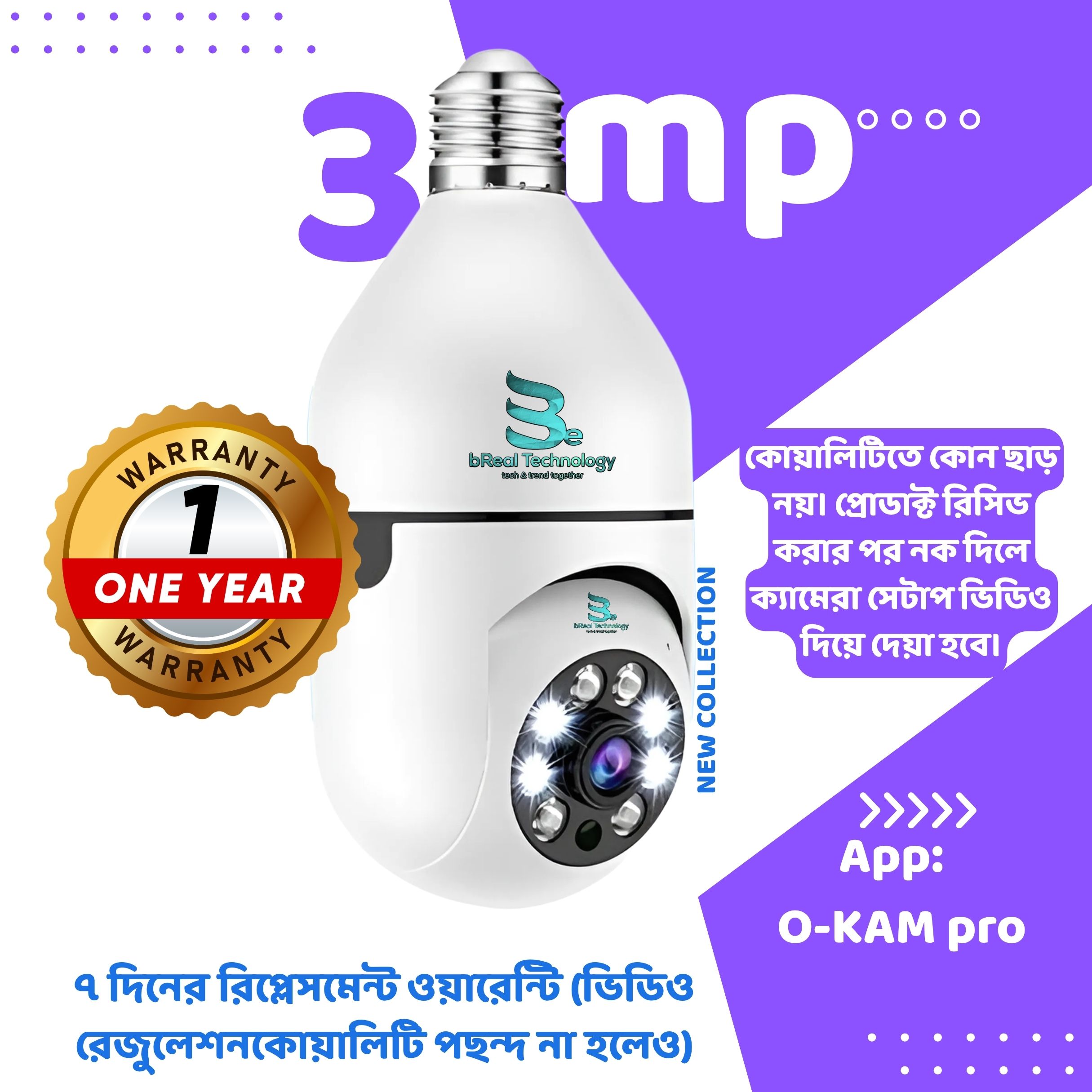• 3MP Wifi Wireless Light Bulb Camera with 360 degree movement.