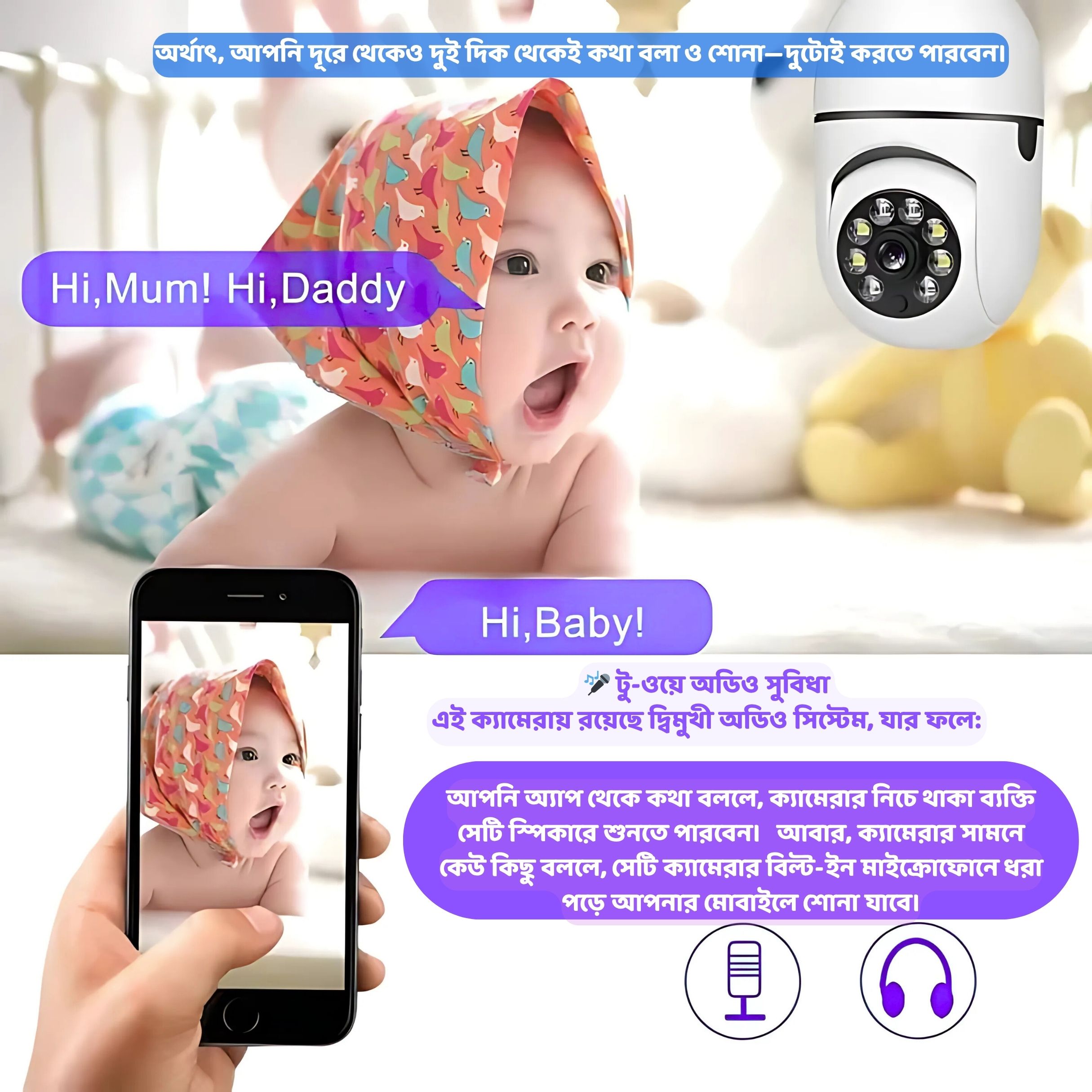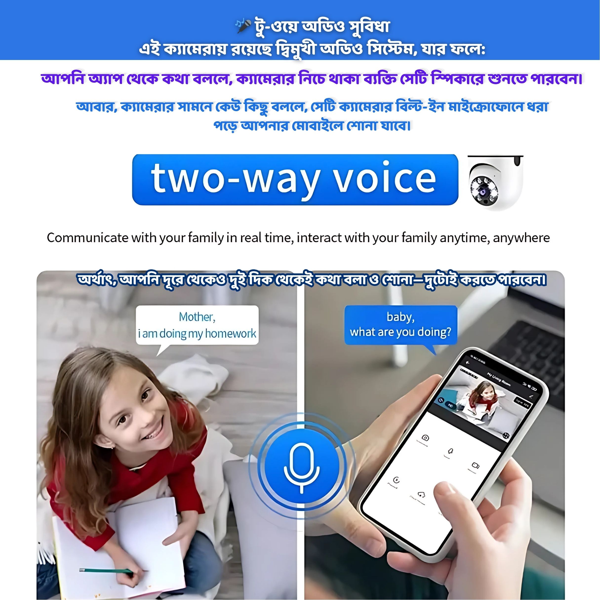 হ্যাঁ, ক্যামেরাটিতে বিল্ট-ইন মাইক্রোফোন ও স্পিকার রয়েছে। ফলে আপনি ৫-১০ মিটার দূরের কথাবার্তা শুনতে পারবেন এবং চাইলে দুই-দিকে কথা বলার সুবিধাও পাবেন।