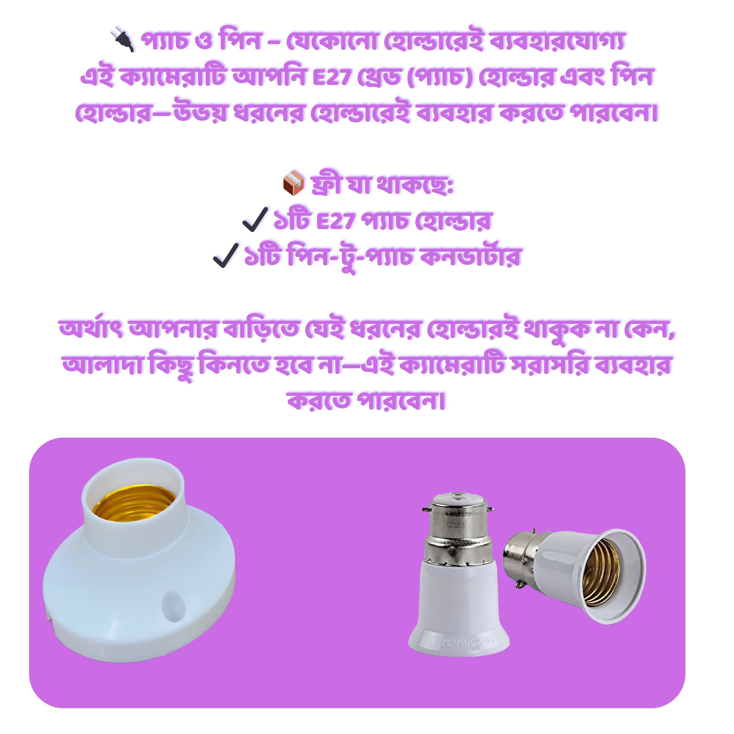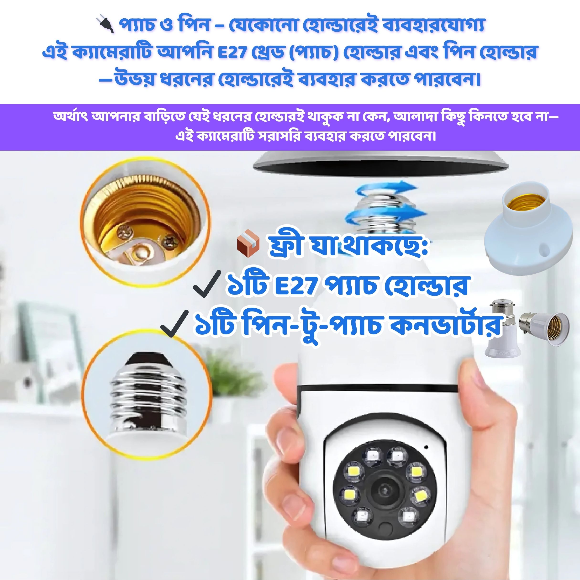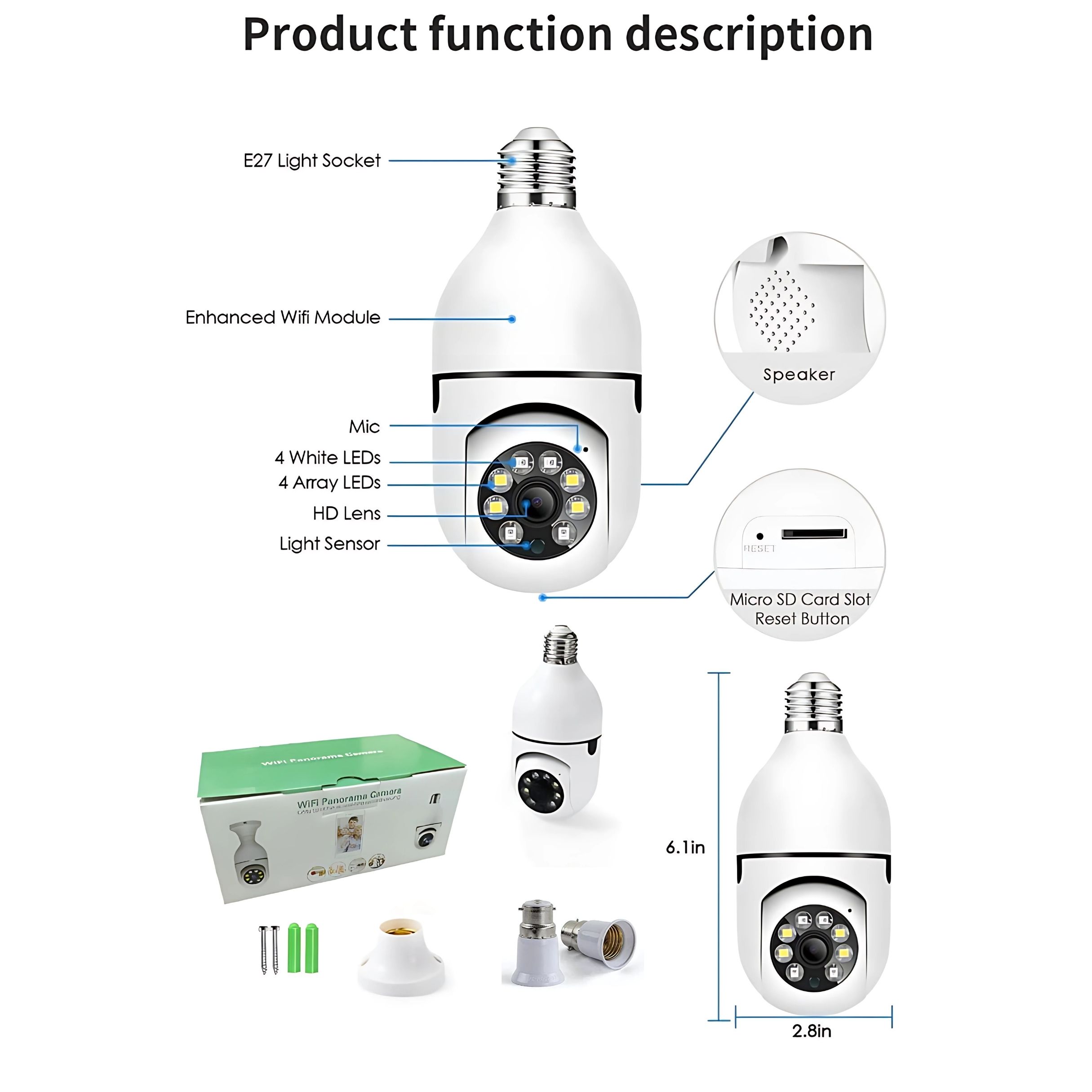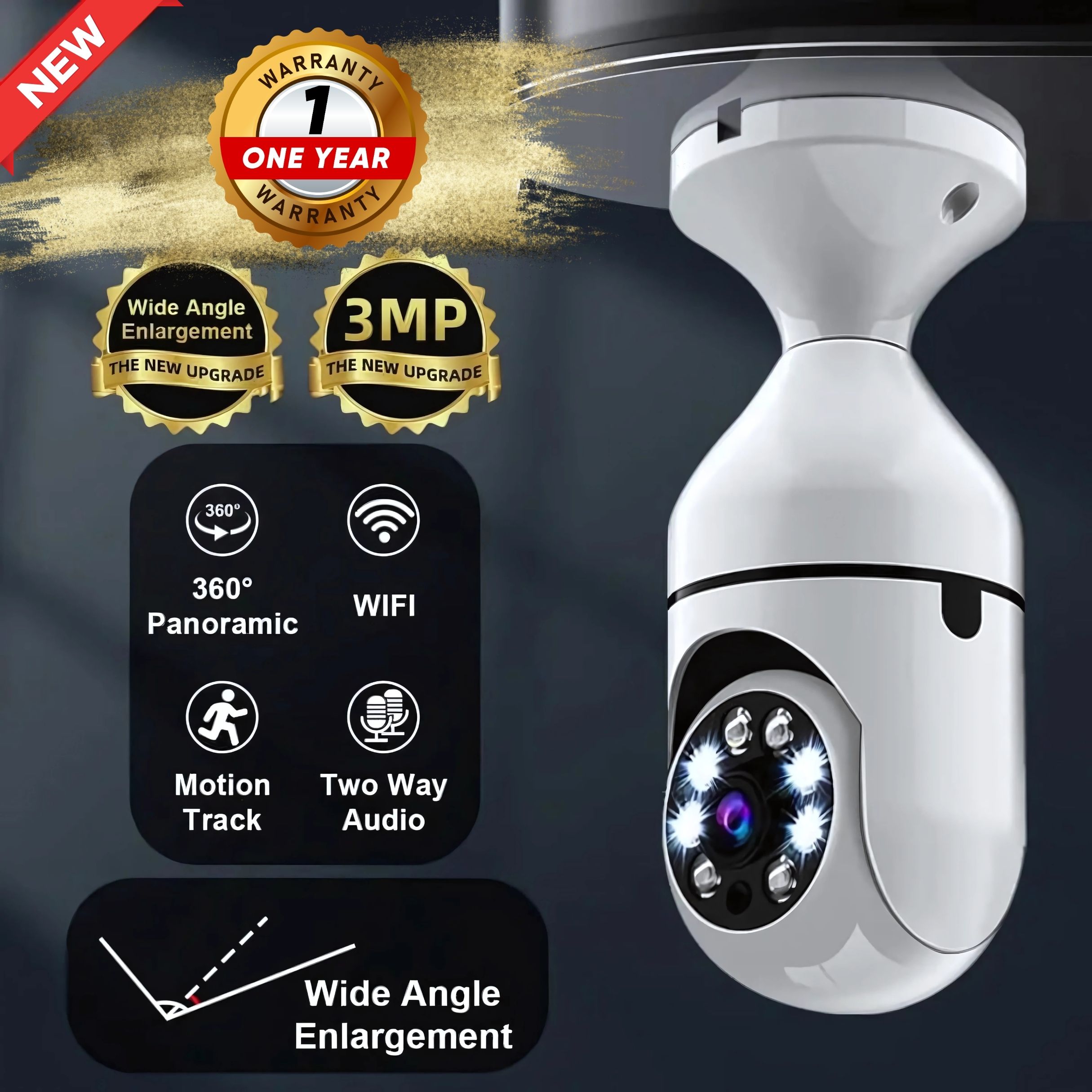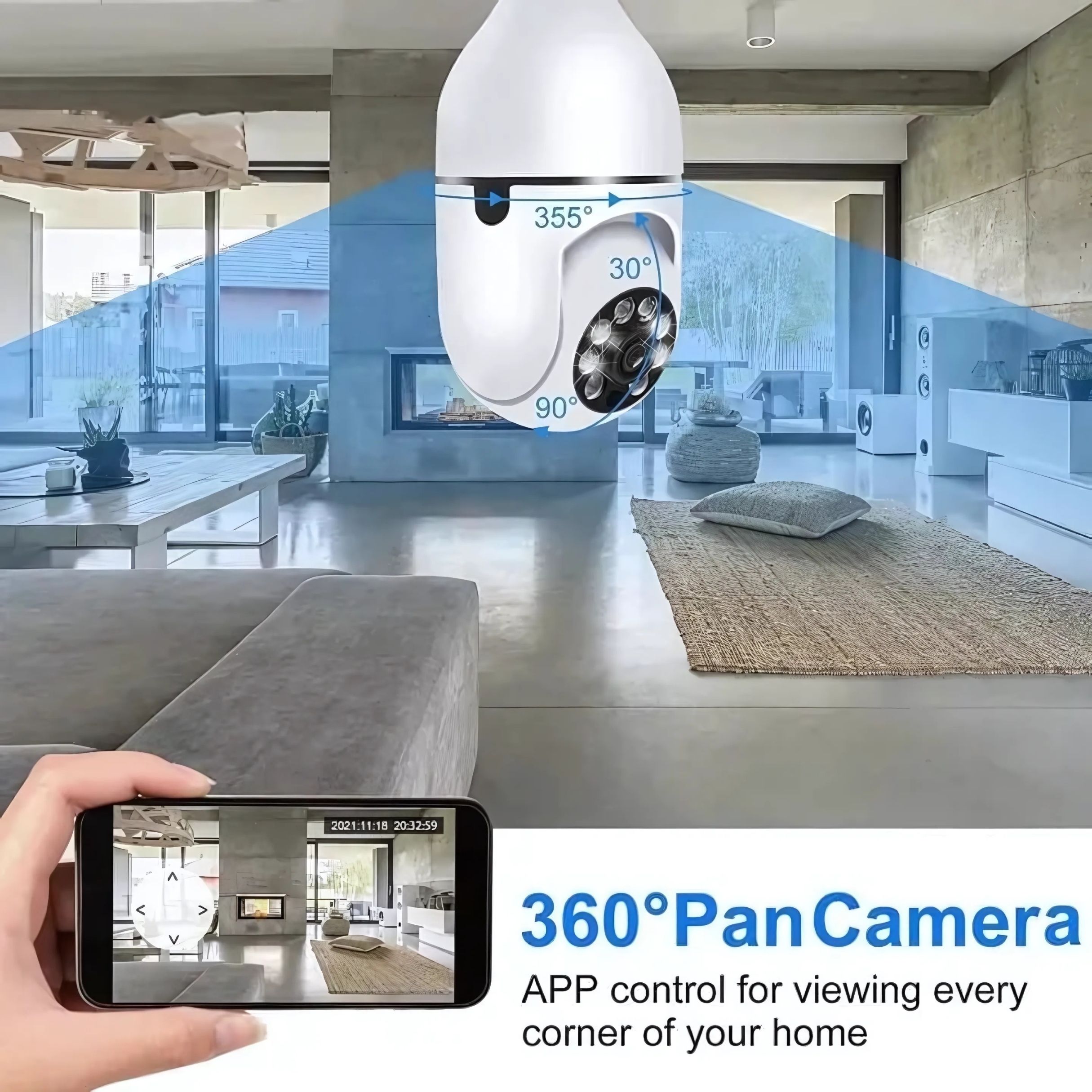 Upgrade your home security with this innovative Light Bulb Camera. Featuring a 3MP Full HD resolution and a 360° rotating lens, it ensures clear, wide-angle coverage of every corner. Simply screw it into any standard E27 light socket—no complicated installation required.