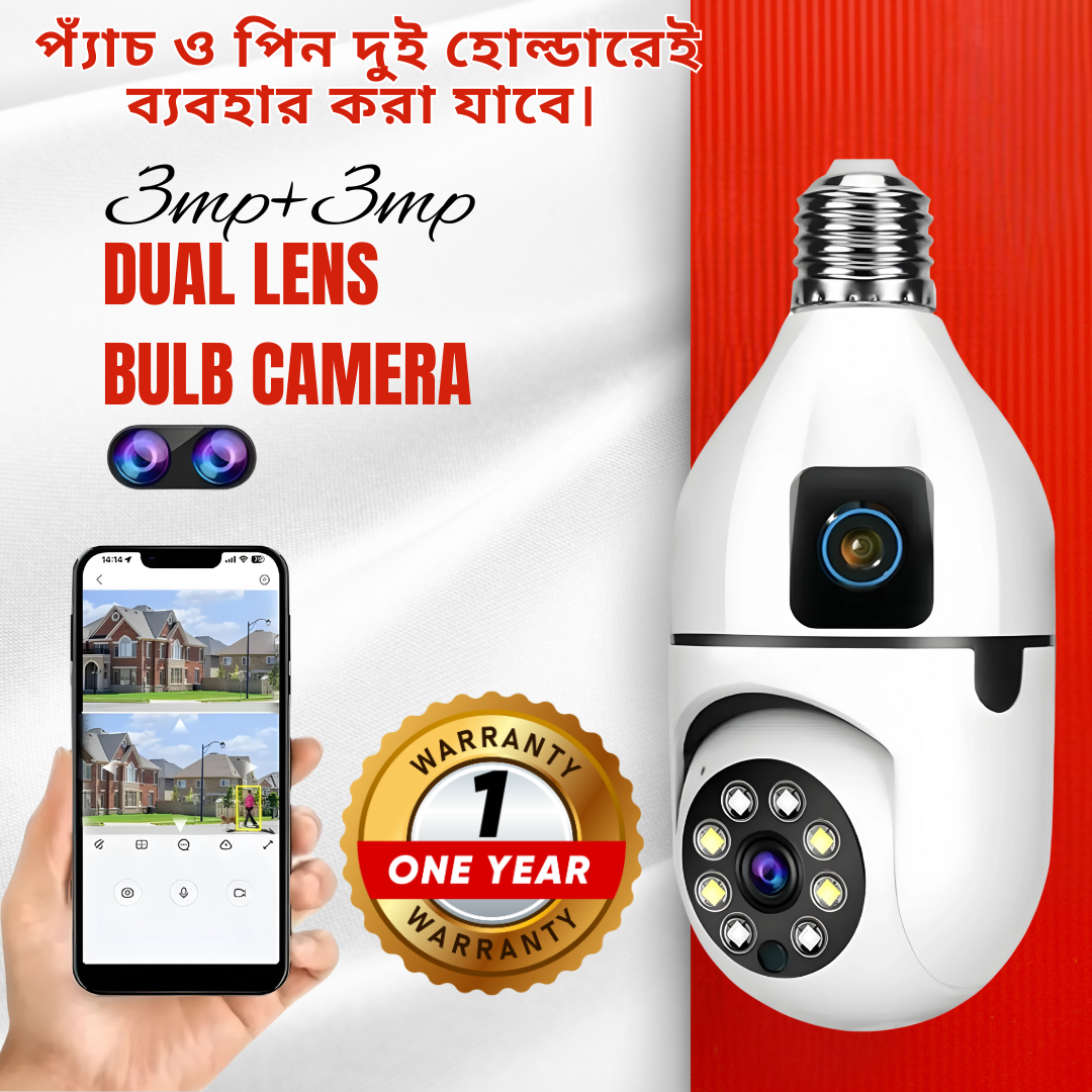 3MP+3MP (Mega Pixel) Dual Lens Wireless Wifi Bulb Holder Camera