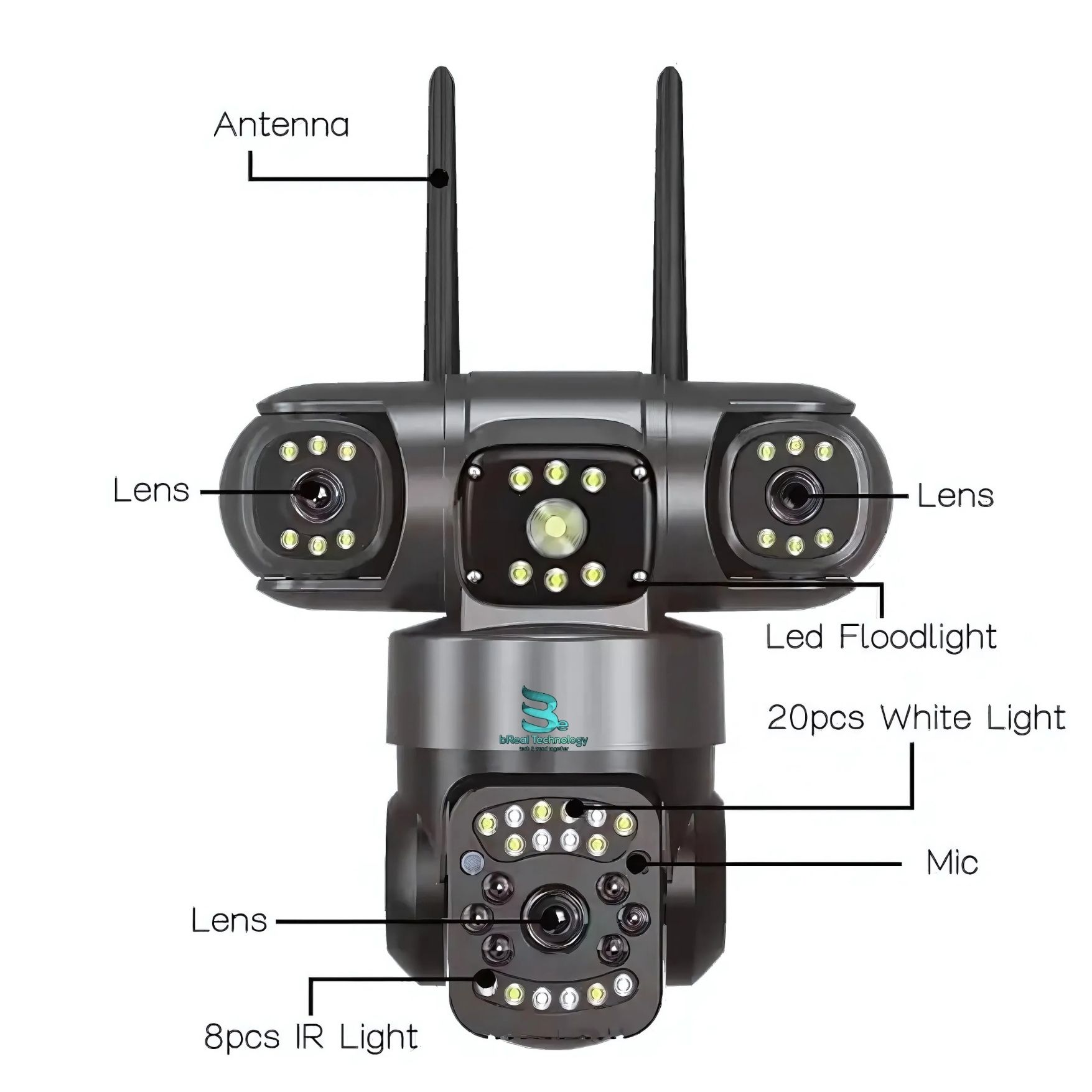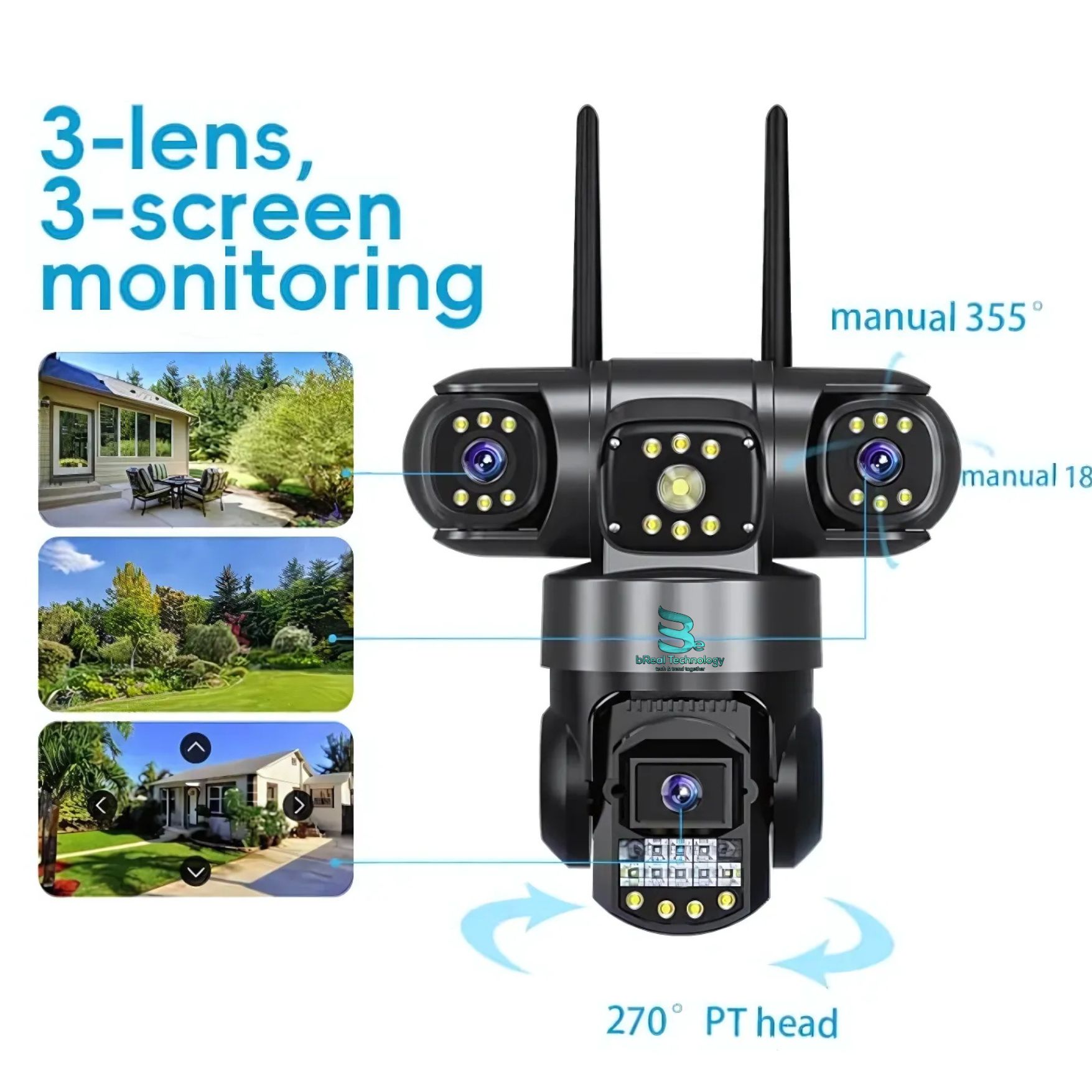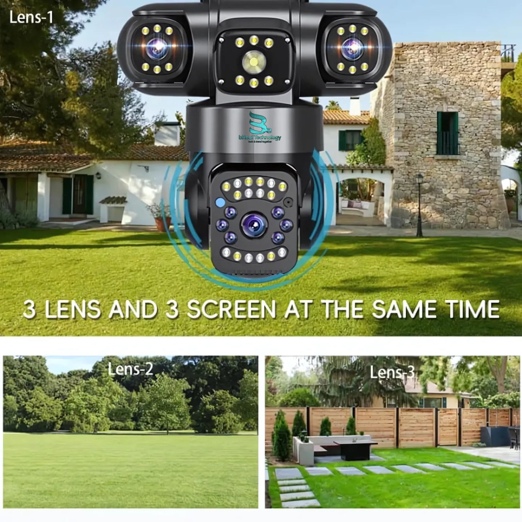🛡️ 9MP (3+3+3) Triple Lens 4G PTZ Outdoor Security Camera – LAN & SIM
