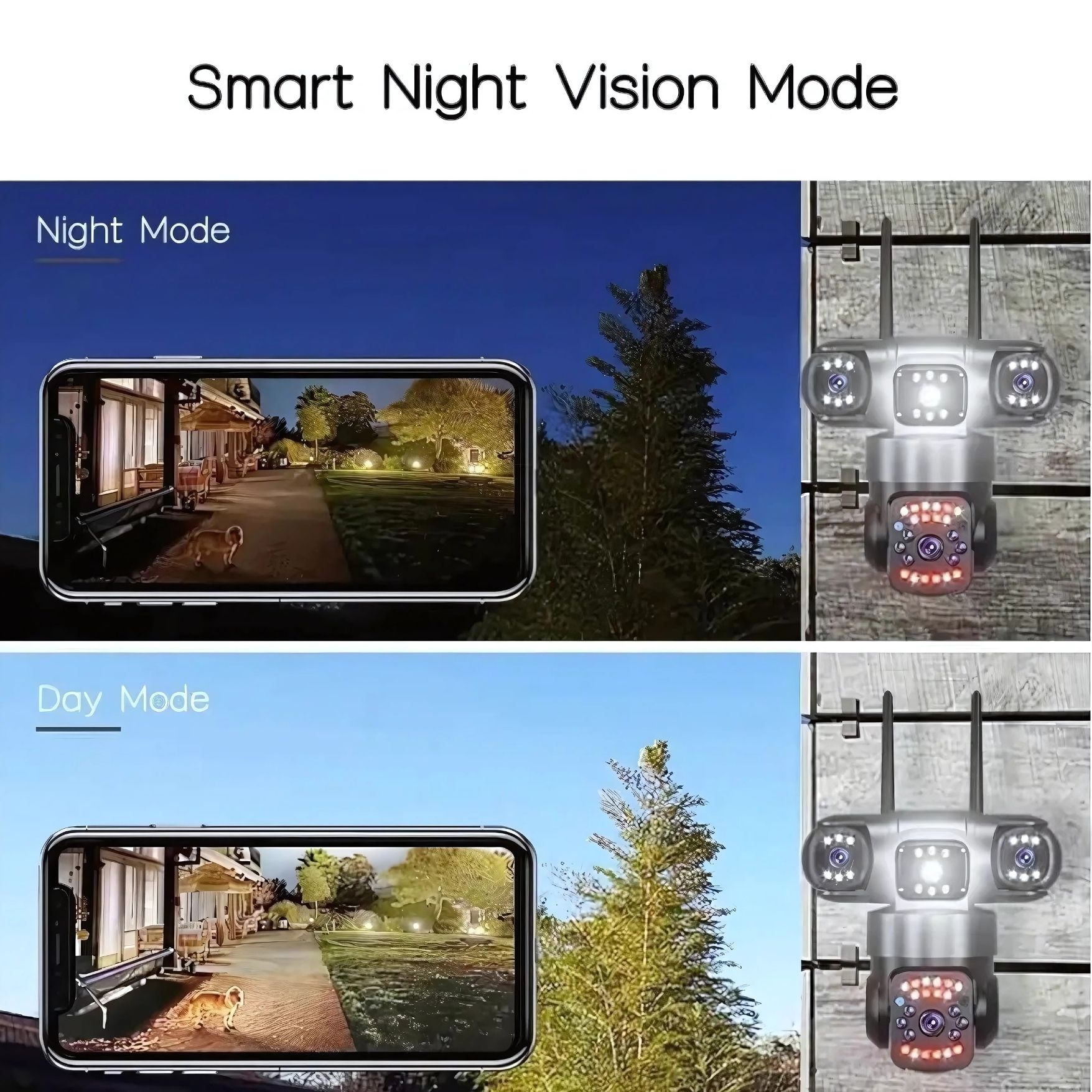 🎥 Install anywhere and enjoy full-time smart security with this 9MP Triple Lens 4G Outdoor Camera.