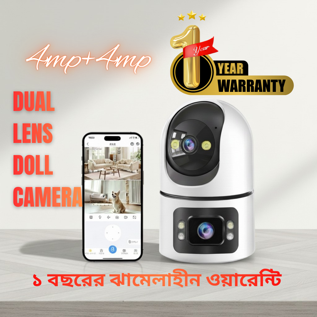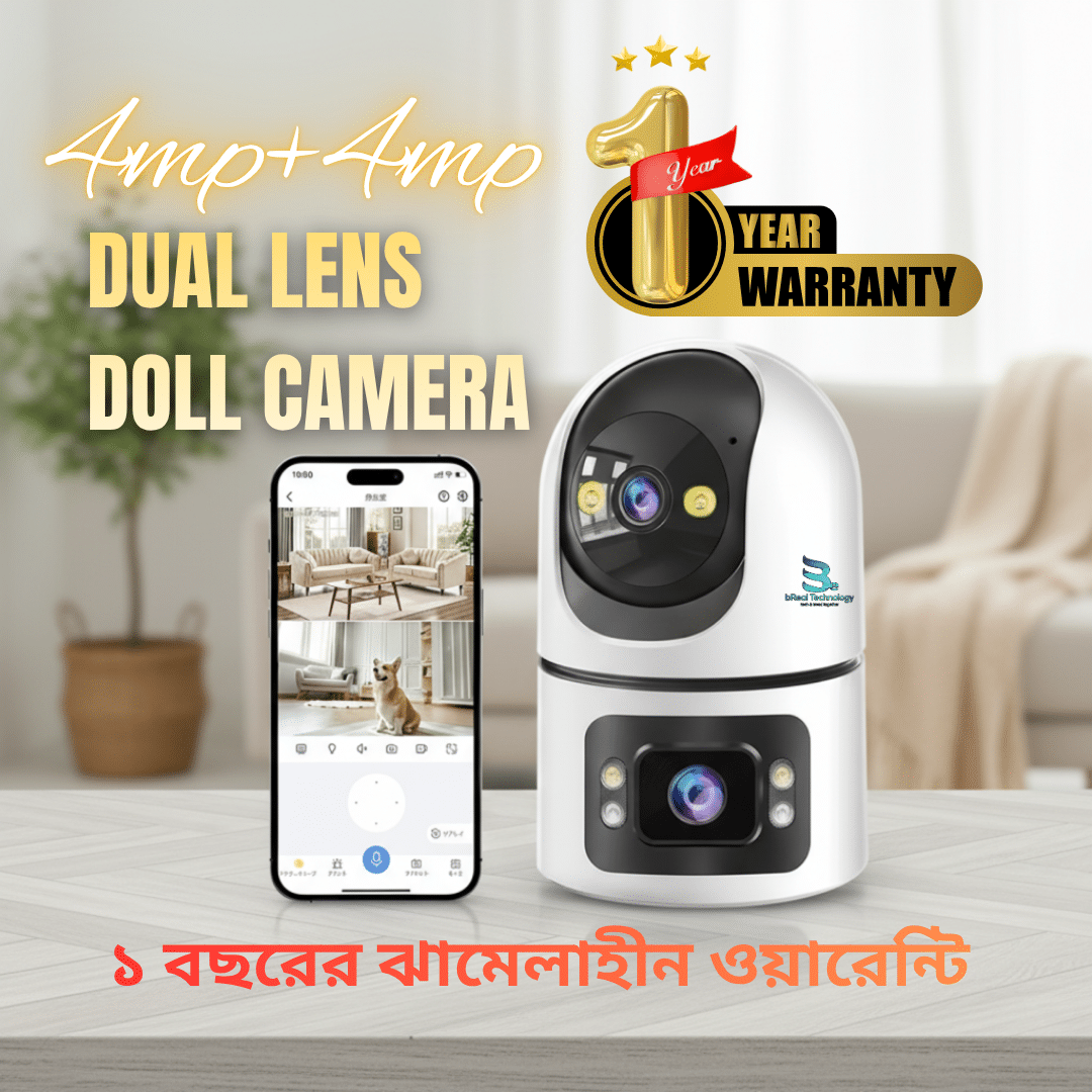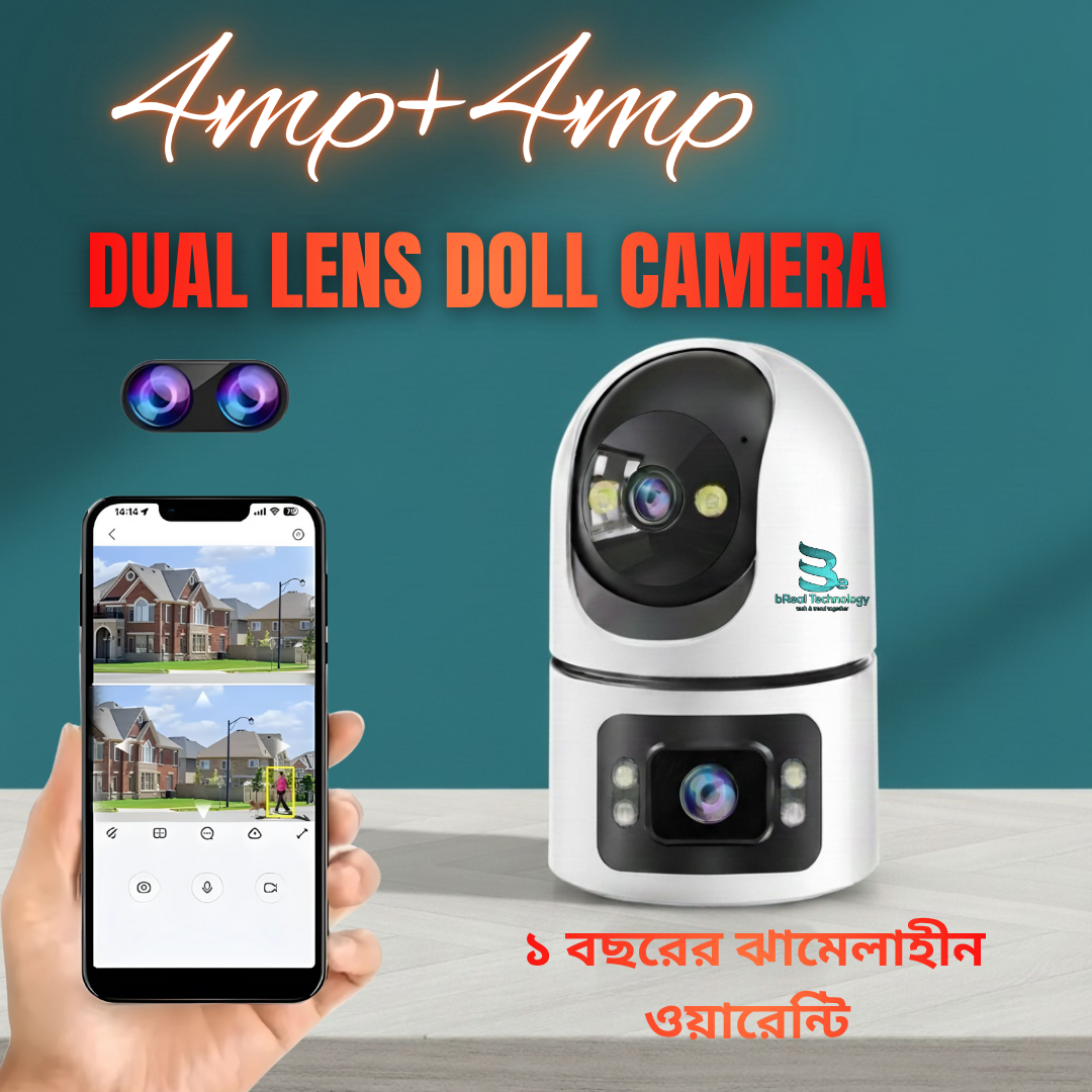 Q: ক্যামেরাটিতে দুটি লেন্স আছে, এগুলি কীভাবে কাজ করে? ANS: হ্যাঁ, ক্যামেরাটিতে 4MP + 4MP Dual Lens রয়েছে। একটি লেন্স স্থির (Fixed) থাকে, অন্যটি ঘোরানো যায়, যাতে আপনি সহজে বিস্তৃত এলাকায় মনিটর করতে পারেন।