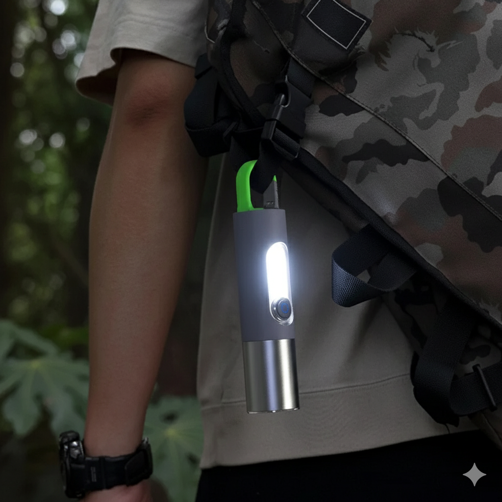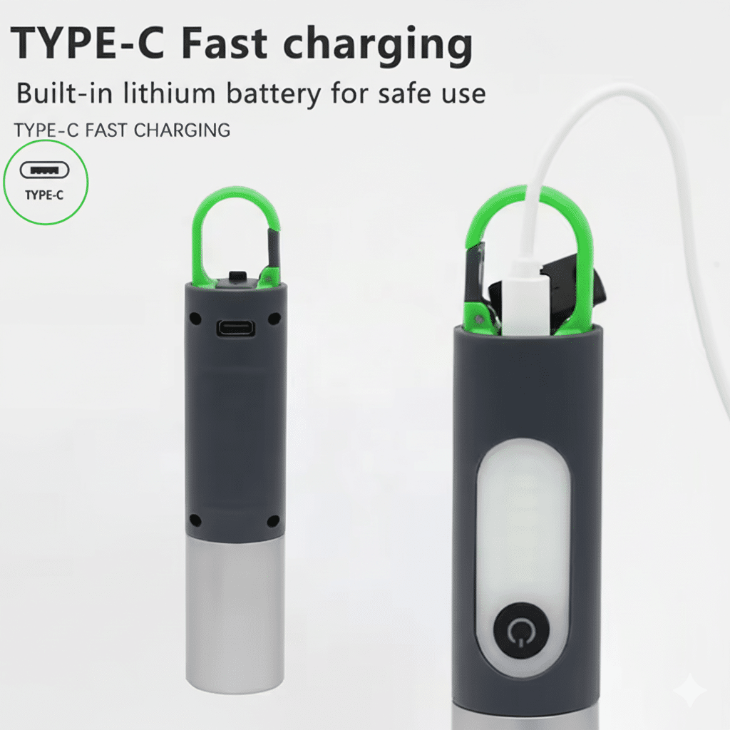 ✅ Super Bright & Long Range – XHP50 lamp bead, 1000 lumens, 200–500m distance ✅ 4 Lighting Modes – Strong light, medium light, flash, side light ✅ Zoom Function – Adjustable telescopic head for focused or wide beam ✅ Durable Build – Aluminum alloy body with frosted texture for grip ✅ Rechargeable Battery – Built-in 18650 battery, Type-C fast charging ✅ Portable & Multifunctional – Can be used as flashlight, camping lantern, or keychain torch ✅ Waterproof (IPX4) – Reliable for outdoor use, even in rain
