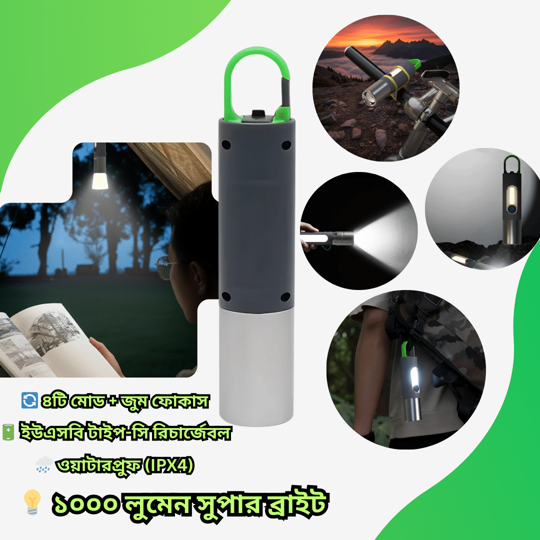 Multifunctional LED Flashlight is a powerful, compact, and versatile lighting solution perfect for camping, fishing, outdoor adventures, emergency use, and daily tasks. Designed with durable ABS aluminum alloy and equipped with a P50 four-core high-power lamp bead, it delivers up to 1000 lumens brightness with a lighting distance of 200–500 meters.